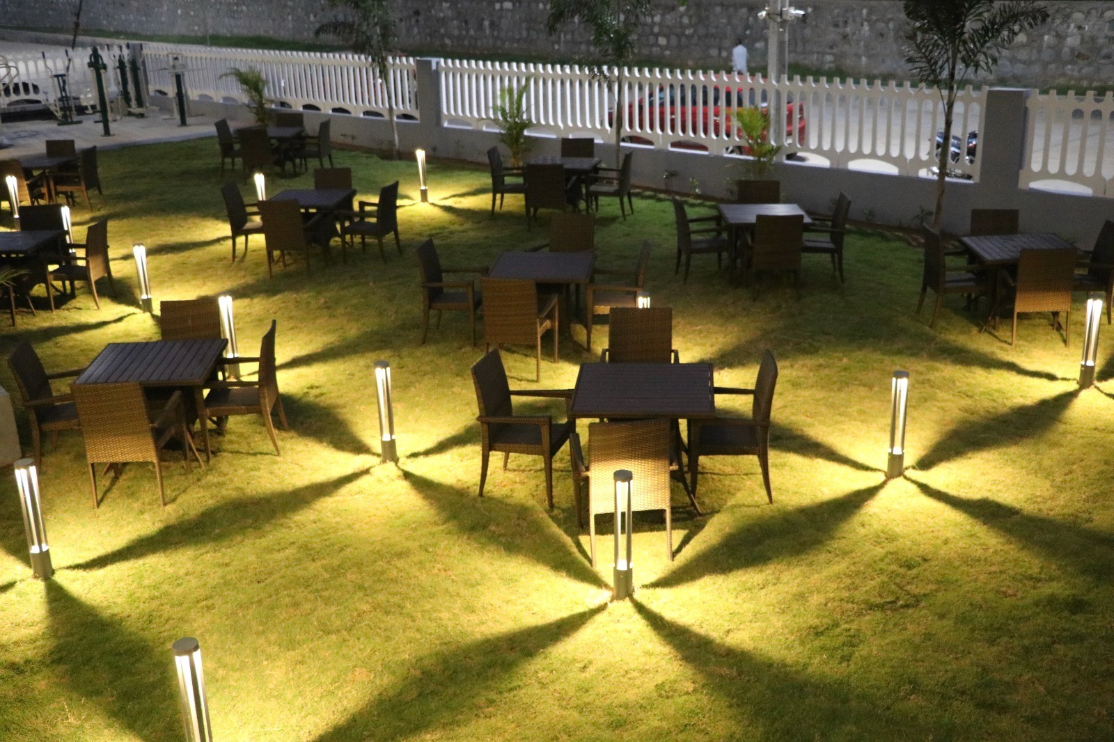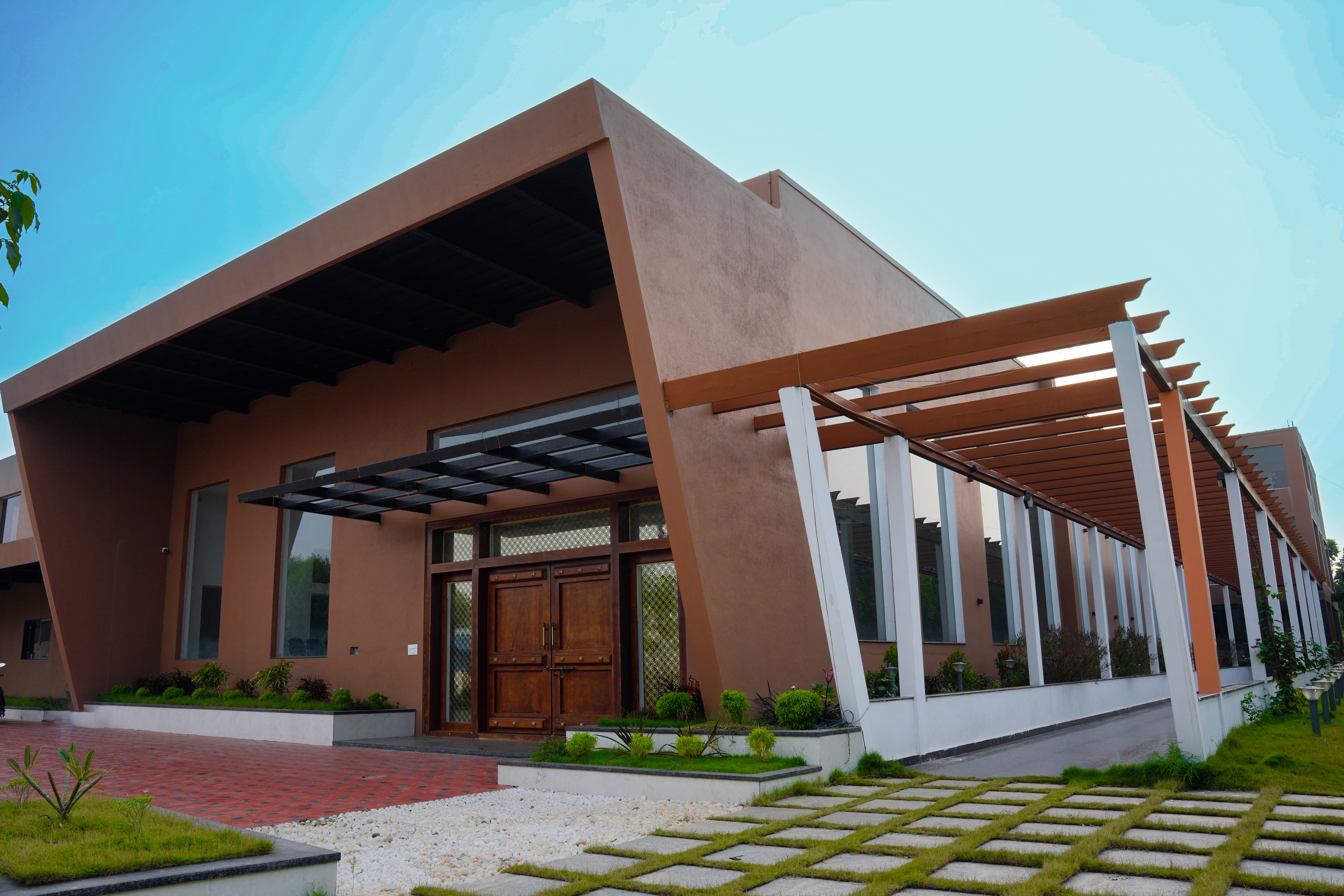 A charming indoor–outdoor venue with hall, lawn, and pergola, for gatherings of up to 75 guests.